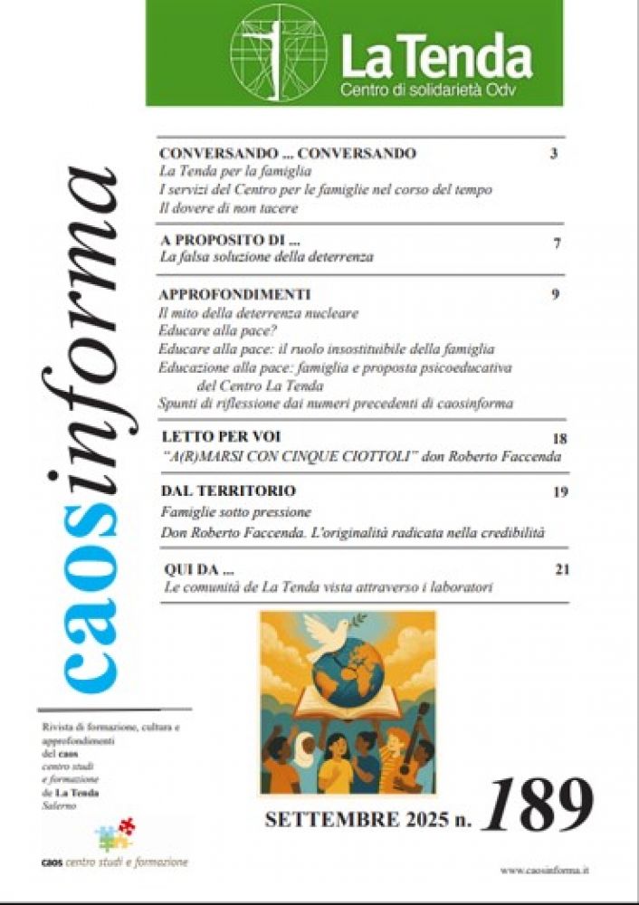 Il numero 189 esplora il supporto alle famiglie in un contesto sociale segnato da conflitti violenti e dalla minaccia nucleare, sostenendo che la vera pace si costruisce nelle relazioni quotidiane e nel sostegno concreto alle famiglie che affrontano fragilità e trasformazioni.