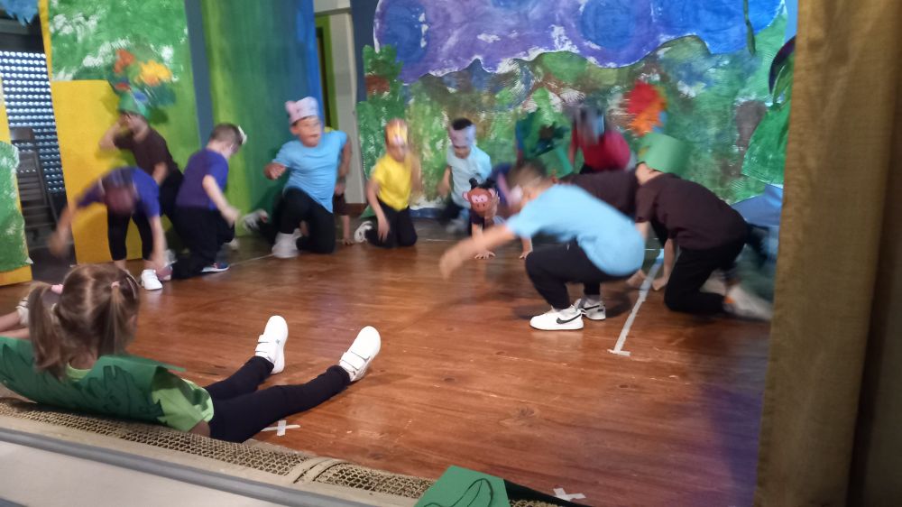 La scelta di unire i laboratori di Arte e Teatro in un unico saggio finale nasce dai bambini, dopo la sperimentazione dei due linguaggi artistici. Le bambine e i bambini hanno sviluppato e condiviso le loro emozioni in maniera naturale e spontanea, realizzando una rappresentazione secondo i loro desideri e mettendosi in gioco con coraggio e senso di responsabilità.