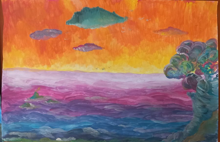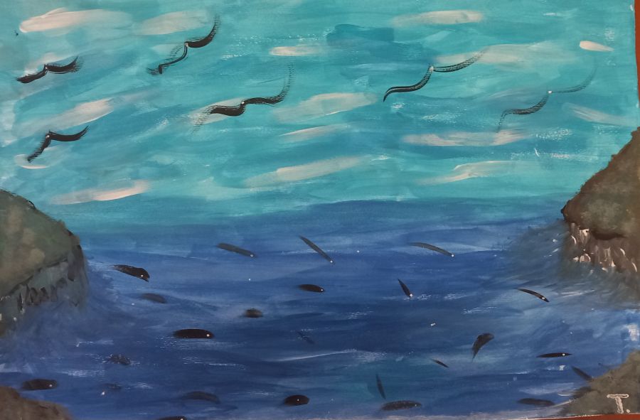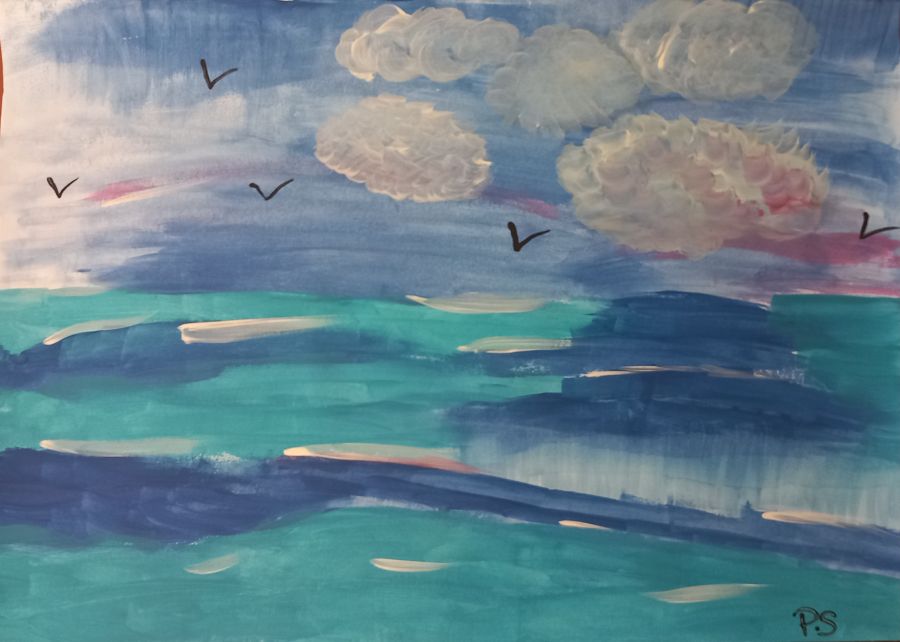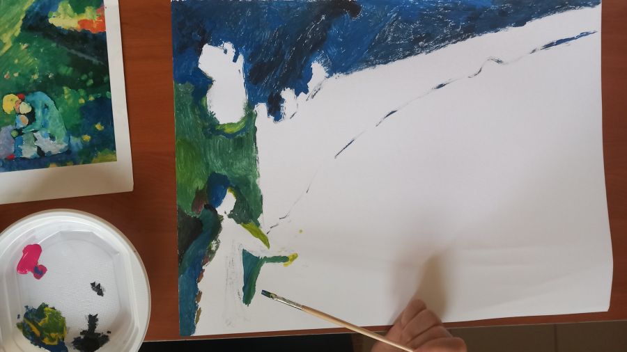 Dopo una breve introduzione su alcuni capolavori dell'arte moderna (Van Gogh, Munch, Kandinsky, Picasso), le ragazze hanno realizzato prima alcune opere a tempera a tema libero, per la maggior parte astratte, per passare poi al tema del paesaggio marino.